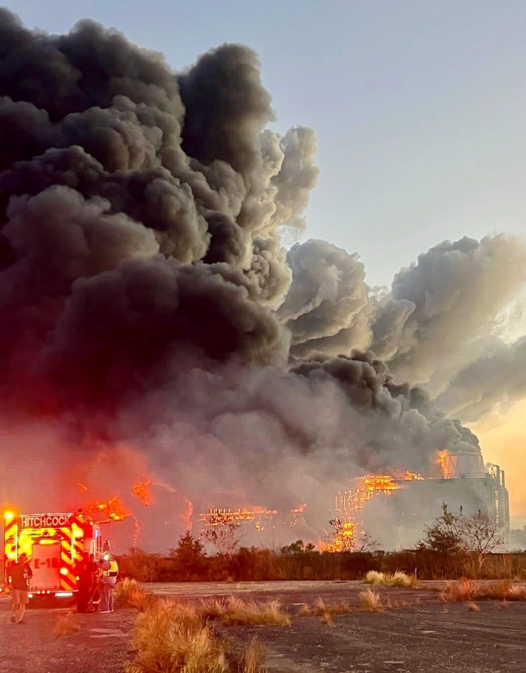 美国德克萨斯州一座退役发电厂发生火灾,浓烟