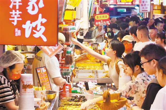 新渝报·重庆日报记者 周莹 国庆、中秋假期,观音桥上挤满了人。 (采访者提供图片)“你看,无人机的队形又变了!” 10月5日晚,南滨路5000架无人机如银河般涌出,晚间展现出“吊脚楼”、“国庆庆典”等巨型图案,与两江碧波荡漾相得益彰,引得众多市民和游客兴奋不已。国庆中秋假期期间,重庆夜间经济成为又一个爆发点。这座此前连续四年跻身中国“经济重灾区城市”的城市,夜间消费激发新活力,成为推动城市经济增长的重要力量。交织无人机秀是“看经济秀”链的一个反应。炫目的无人机灯光不仅为重庆的夜空加油,但也忽略了这座城市的夜间消费。 “自下午7点以来,我还没有停止坐在桌子旁。” 10月5日,晚上9点,老板Wang Qiang在擦拭汗水的同时提供了菜肴。这家热锅餐厅距离主要无人机性能区仅300米,当天的营业额超过80,000元,一个工作日的晋升为300%。商店里有32张餐桌,有20多个游客在门外等着。 “我进行了一次特殊的旅程观看无人机表演。我没想到晚上看起来不错,食物很丰富。”王小从武汉(Wuhan)抬起手机,录制了两条河流的亮度圣交叉点。 “运河的光和阴影和接收餐饮”的消费链由Nanbin Road最好的观看场所中的完整生态系统形成。数据表明,10月5日,丹齐希旧街及其周边地区收到的游客数量超过114,000,同比增长119%;小米旧街收到的游客人数为50,700,同比增长54.86%;一日游具有无人机性能的周围游客数量超过100,000。自从今年4月的无人机灯光表演的正常表演以来,周六和假期的天空表演已成为重庆的新“顶级明星”。它不仅可以减轻游客对视野的热情,而且还可以激活周围的商业消费。例如,由Hongyadong文化和创意市场推出的是“无人机”主题纪念品,这些纪念品经常受欢迎。前往Jiefangbei商业区的“无人机”主题已成为一个热门歌曲,游客可以戴AR眼镜来享受虚拟烟花和真实灯光的幻想场景。 Guanyinqiao行人街无人机弹出式商店在半小时内销售100多个共同品牌的迷你无人机。强大的环境O舌头尖端的城市烟花会导致消费繁荣。如果无人机被点燃了山区城市夜空的热爱,那么晚餐就会与城市烟火煮沸。晚上9点10月3日,江野桥(Guanyin Bridge)的美味街上充满了与Teppanyaki的“嘶嘶声”的声音。 Zeng先生从Harbin的手提箱里拖走了,然后直接去了它:“重庆小吃Xiaohongshu的种植植物了!我会签到飞机一旦启动了一顿美味的一餐,刘的兄弟展示了他的手机支付记录,但每天的最大转变是23,000 Yuan,这是23,000 Yuan,这是40%的街道,而我的全国销量要多于我准备了三次。在国庆节和四月节日假期的前三天,乘客人数超过505,000。销售超过61.5亿元人民币,一年一度的4.6%。经济”是Al如此以丹兹西旧街(Nan'an District)闻名 - “夜市寻宝”庆祝食物的主题是“不合理的文化遗产技巧和时尚游戏的主题组合。费率达到5次,这比平常高。 “据了解,主要的商业区正在与主要的餐饮公司接触,以推出“ Yuwei 360碗”主题套餐和许多折扣,并进行互动体验,例如不掩饰的文化遗产。旅游和Karnabal是丰富而丰富多彩在最终的时期X,一些受欢迎的航班售出了半小时。距离中城100多公里,也很棒。有一天,夜晚的高品质景色;